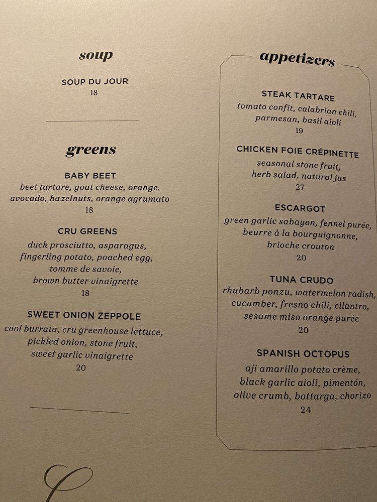 Start your journey with the Lobster Risotto or indulge in the complexity of Lamb Tartare. For seafood lovers, the Charred Spanish Octopus delivers an explosion of flavors, while vegetarian options like Squash Blossoms showcase seasonal freshness. Each dish is presented with exquisite artistry and crafted from high-quality ingredients.